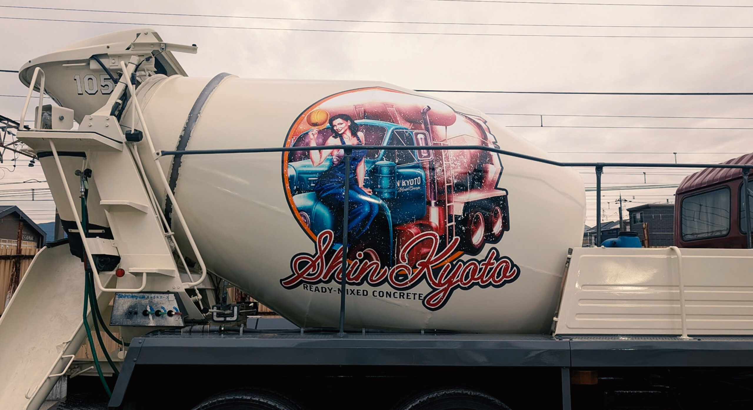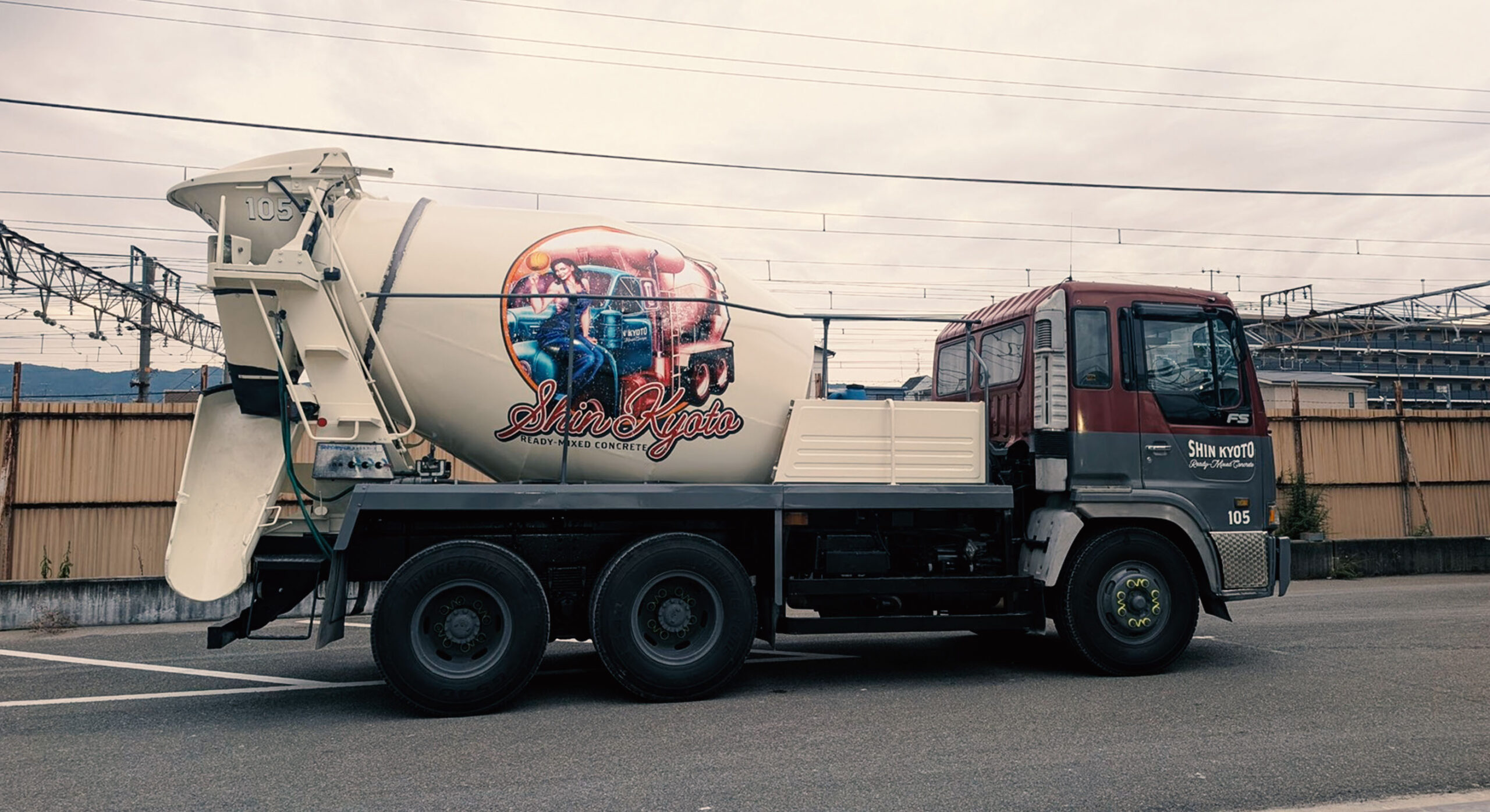 新京都生コン株式会社様が掲げる「おもろい生コン会社」というビジョンの体現と、古いミキサー車のリサイクル(有効活用)が主な目的です。